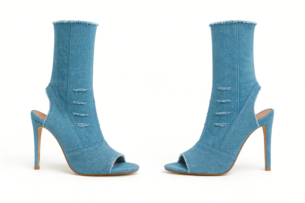 El 90’s urbano hecho stiletto. Mezclilla, rebeldía y lujo en un mismo paso.